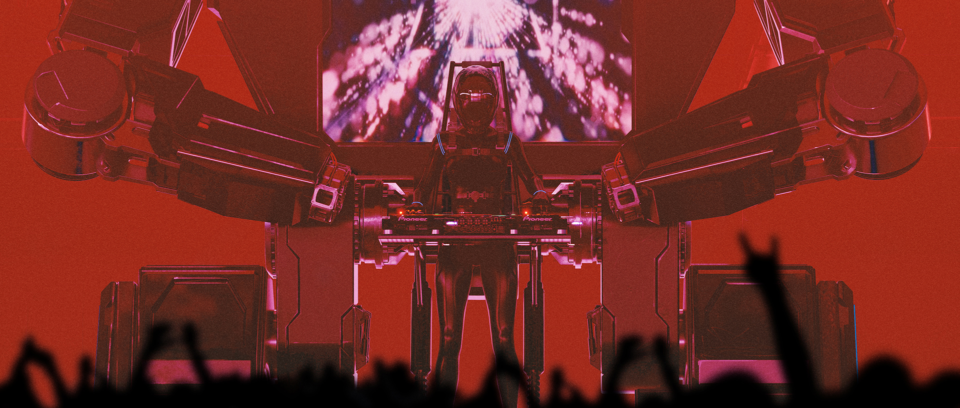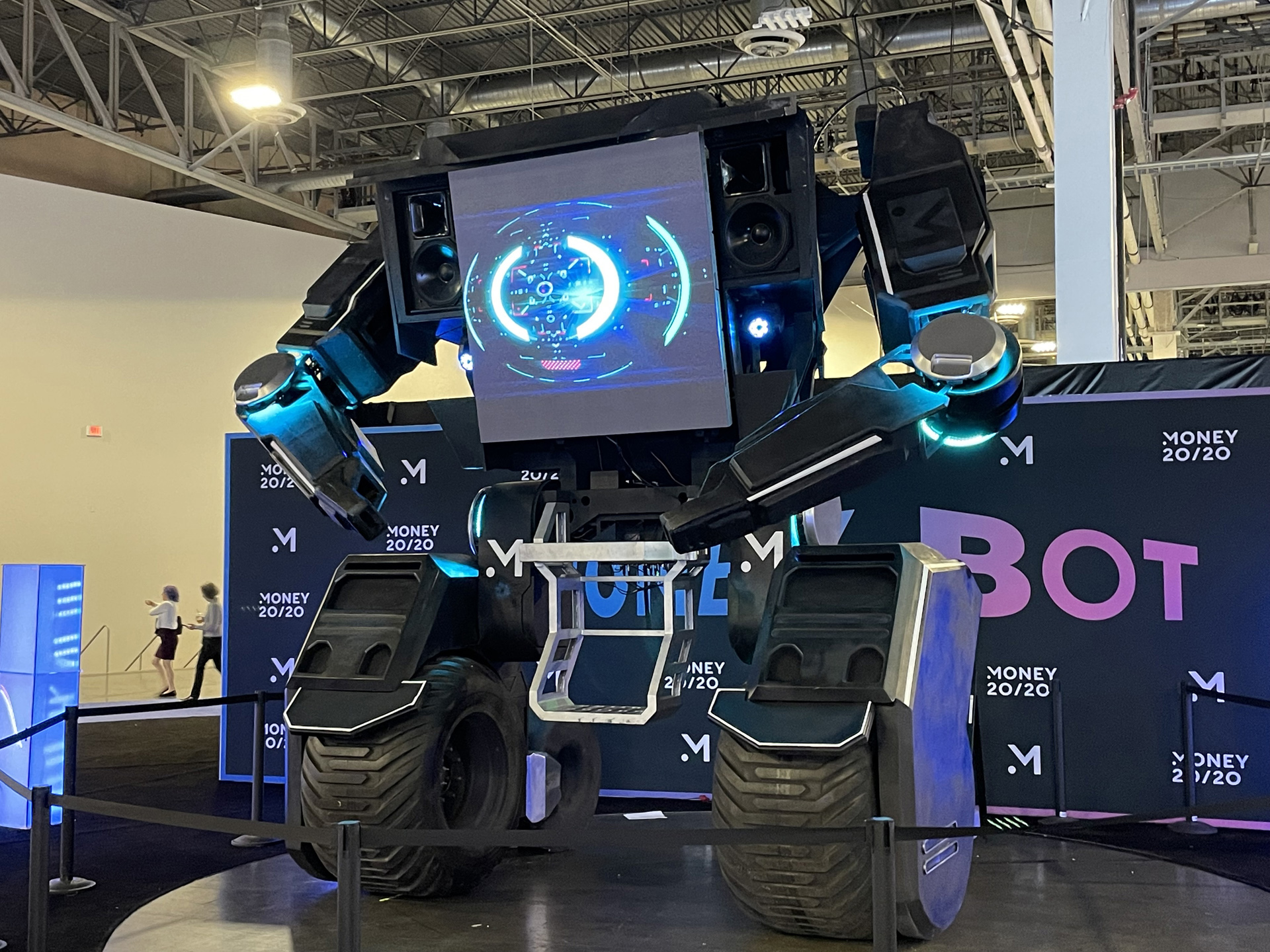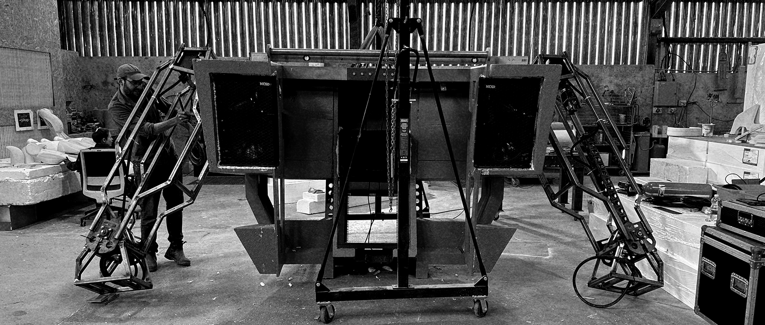A robot DJ booth/screen created for the Money 20/20 show in Las Vegas. This was a very complex project as we had to hide a full music PA system and motor systems to operate the wheels and arms within the design, whilst also ensuring it was safe. This is the final sketch, I then modelled it the outer cladding in Fusion in collaboration with the engineering team who did the internal frame. Some shots of assembly and the final prop below.