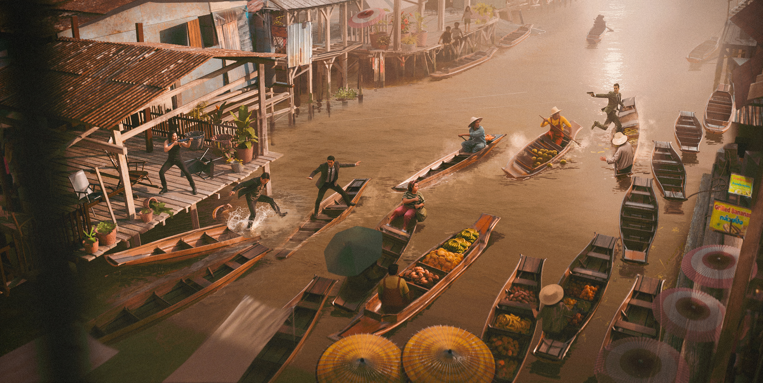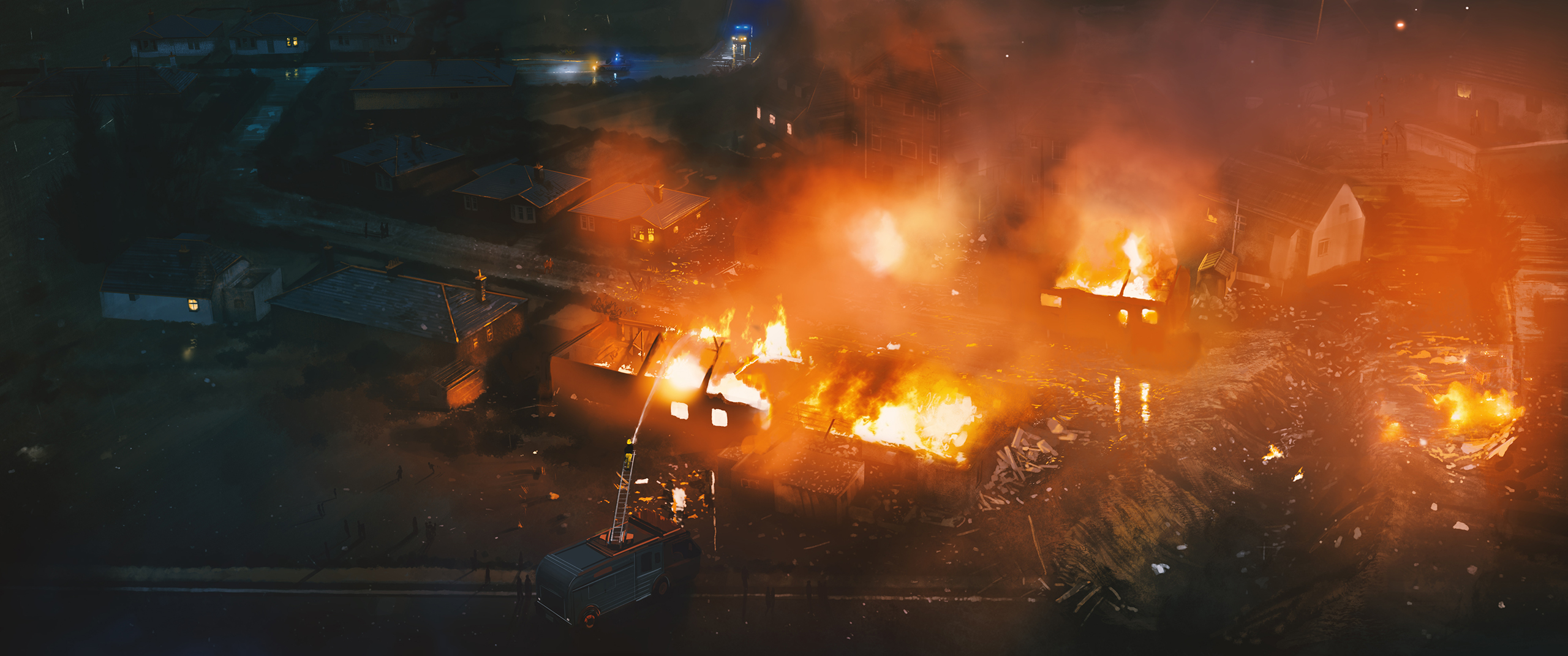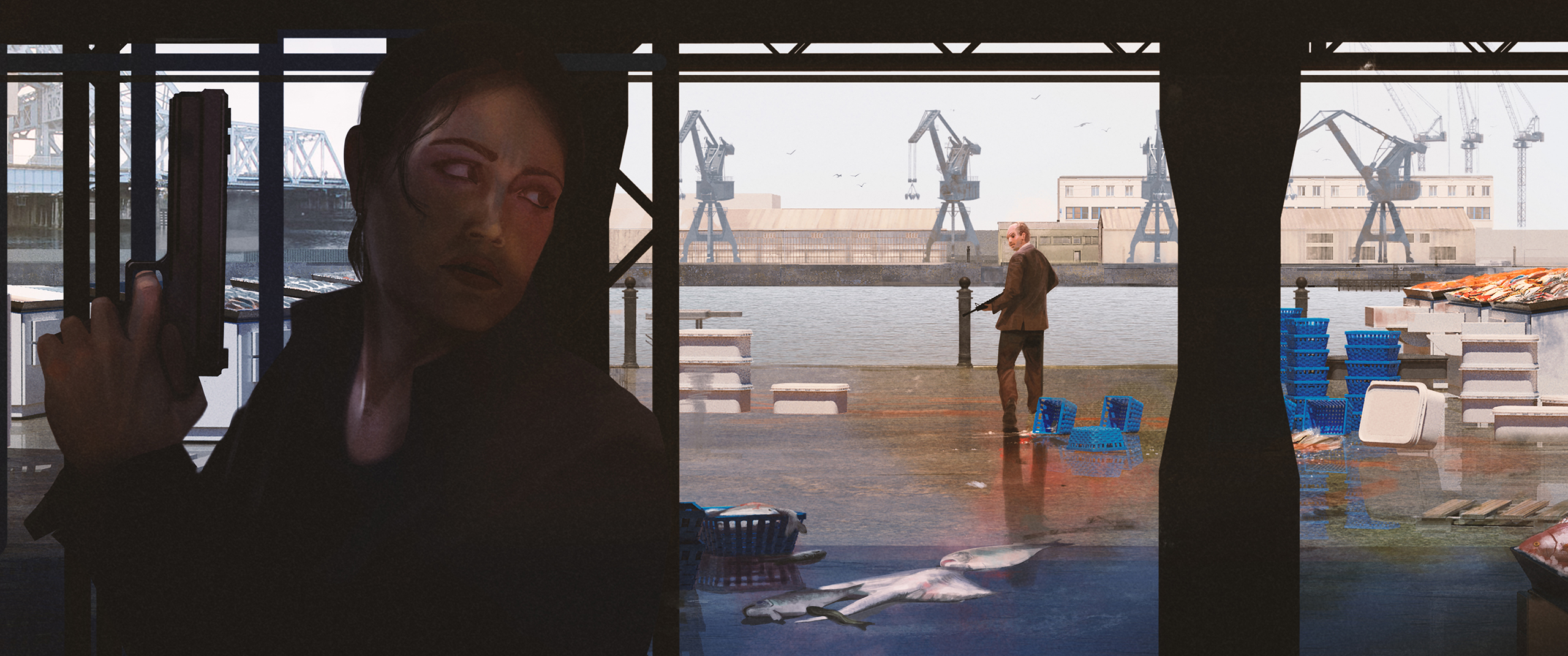 A selection of keyframes and environment shots focussing on a more photoreal style mixing 3D, photobashing and digital painting.